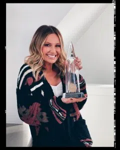 Along with her smiling photo, Carly added “My team surprised me yesterday with this gem. I have dreamt of winning one of these since I was 5 years old, so there were plenty of tears when I held my very own with my name on it in my hands. Thank you country fans & thank you CMA Country Music Association”